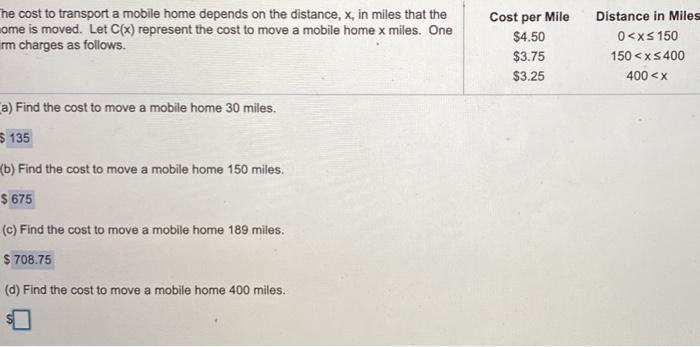 Solved The Cost To Transport A Mobile Home Depends On The Chegg Com